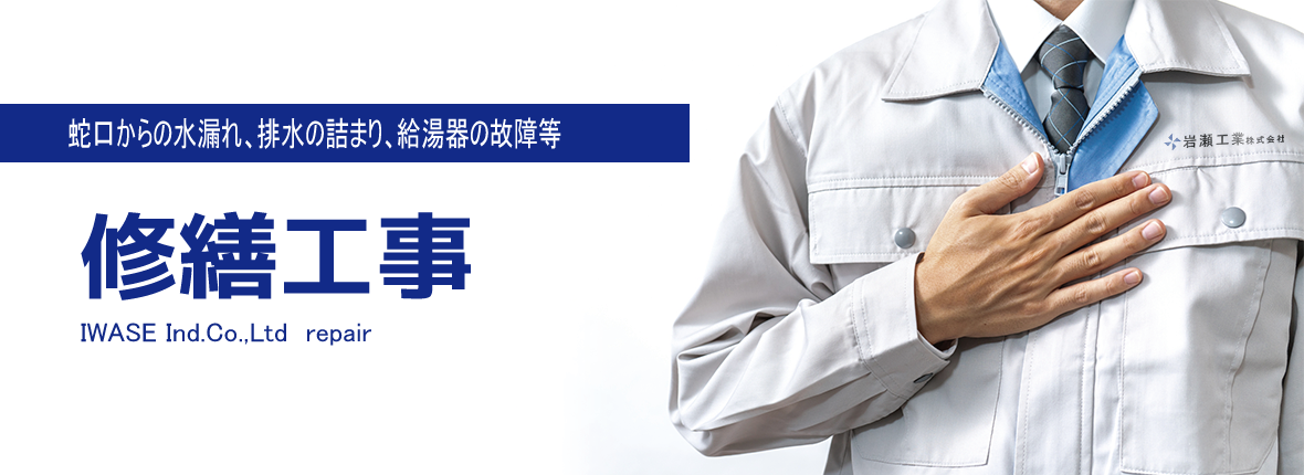 Repair 修繕工事 HOME 修繕工事 小規模な作業から大規模な修繕工事まで 小規模な作業から大規模な工事まで、水道の蛇口からの水もれ・敷地内での漏水、排水の詰まり、給湯器の故障等のお困りの時はご相談ください。 私たちは、高い技術と高品質のサービスに非常に自信を持っています。常にお客様の期待に応えることができる、それこそが私たちの使命だと考えております。 漏水及び排水の詰まり、給湯器の故障対応 漏水修理 水漏れを放置した場合は、その文 無駄な料金を支払う必要があります。漏水箇所がわからない場合は、できるだけ早く水道工事専門にお任せください。 排水の詰まり 排水が放置され、水が漏れた場合、集合住宅では、下の階に漏れたりします。排水管や下水のひび割れや汚物の詰まりなど、さまざまな原因があります。 給湯器の交換 給湯器は、いざ故障してしまうとお湯が沸かせない、お風呂に入れない等、かなり困る機器です。 ぜひ岩瀬工業にご相談ください。 暮らしの中での水廻りのお困りごとをご相談ください。